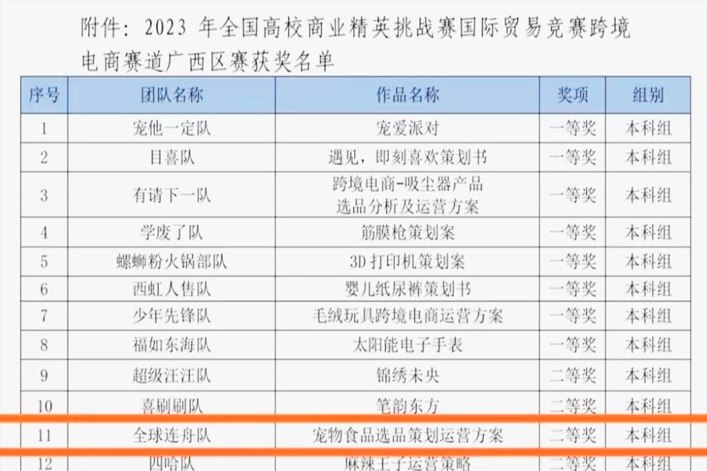 由中国国际贸易促进委员会商业行业委员会、中国国际商会商业行业委员会、中国商业经济学会主办,南宁职业技术学院承办的2023年全国高校商业精英挑战赛国际贸易竞赛“颜值立方杯”跨境电商赛道广西区赛,于9月23日落下帷幕。由外贸与外语学院国际经济与贸易教研室专任教师蒋兰兰、罗盛皓指导的学生参赛队伍荣获本次大赛跨境电商赛道(广西赛区)二等奖。