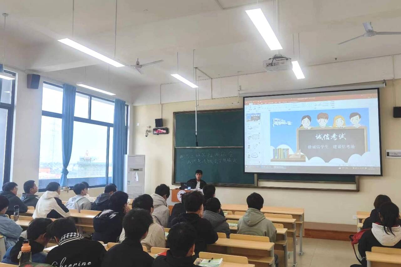 会上,各新生辅导员向同学们说明了诚信考试的重要性,带领同学们认真学习了《pp电子模拟器网站考试管理规定》文件内容,并鼓励所有同学齐头并进、严于律己、争创佳绩,共同营造优良学风考风。同时,各新生辅导员通过PPT讲解、观看视频等形式,向同学们发出了“诚信迎考”的倡议,并通过讲述考试作弊被抓处分案例进行警示教育。最后,同学们也互相分享了一些考前冲刺的学习方法,鼓励同学们树立起自主学习的意识,为考试做好充足准备,以避免考试作弊现象的出现。
