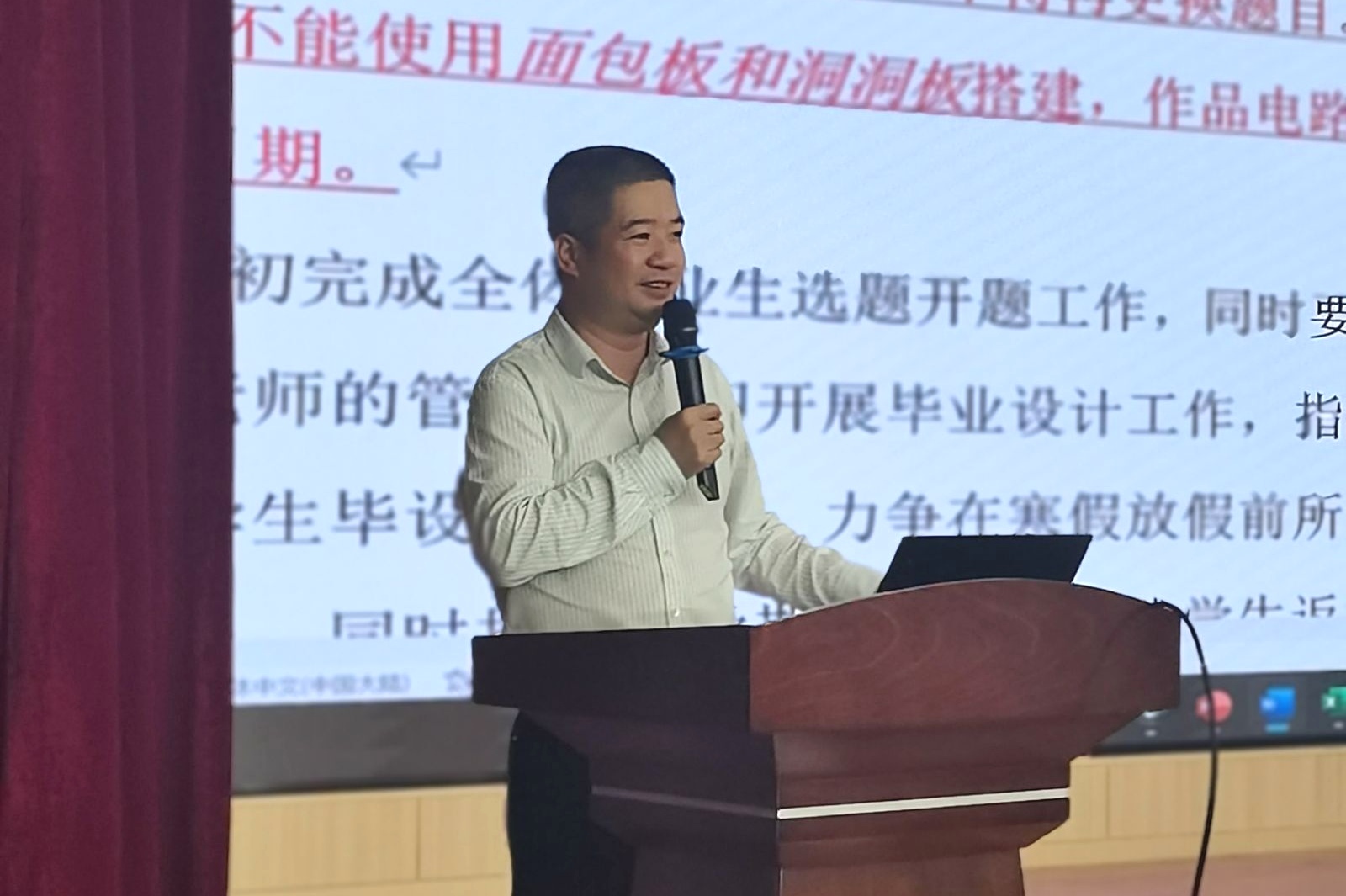 为扎实做好2024届本科毕业设计(论文)工作,规范毕业论文过程管理。12月11日,电子工程学院在F107召开2024届本科毕业设计(论文)开题动员大会,学院院长韩桂明出席会议,毕业设计(论文)指导老师、2024届毕业班辅导员、教学实践秘书以及2024届毕业班同学参加动员大会,会议由杨雪娜老师主持。