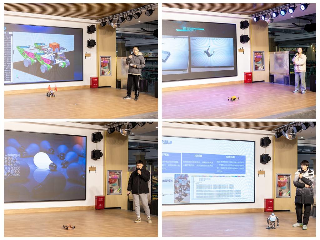 比赛中,各组队伍首先通过PPT从设计思路、设计及开发过程、设计成果、成本分析、主题展示等方面进行汇报,然后启动机器人,让它们随着音乐翩翩起舞。各组参赛选手在深入学习机器人工作原理及设计技术的基础上,开拓思维,大胆创新,设计出各种样式的机器人,辅以精心设计的舞蹈动作,展现出pp电子学子昂扬的精神风貌,给观众呈现了一场精彩的视觉盛宴,引来现场评委和观众的阵阵掌声。