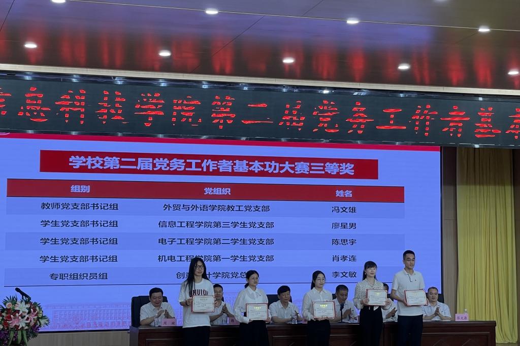 6月14日,由pp电子模拟器网站党群事务部组织举办的第二届学校党务工作者基本功大赛在F107落下帷幕。信息工程学院专职组织员吕丽荣获组织员组一等奖,第四学生党支部书记谷鑫钰、第三学生党支部书记廖星男分别斩获学生党支部书记组一等奖、三等奖的优异成绩。