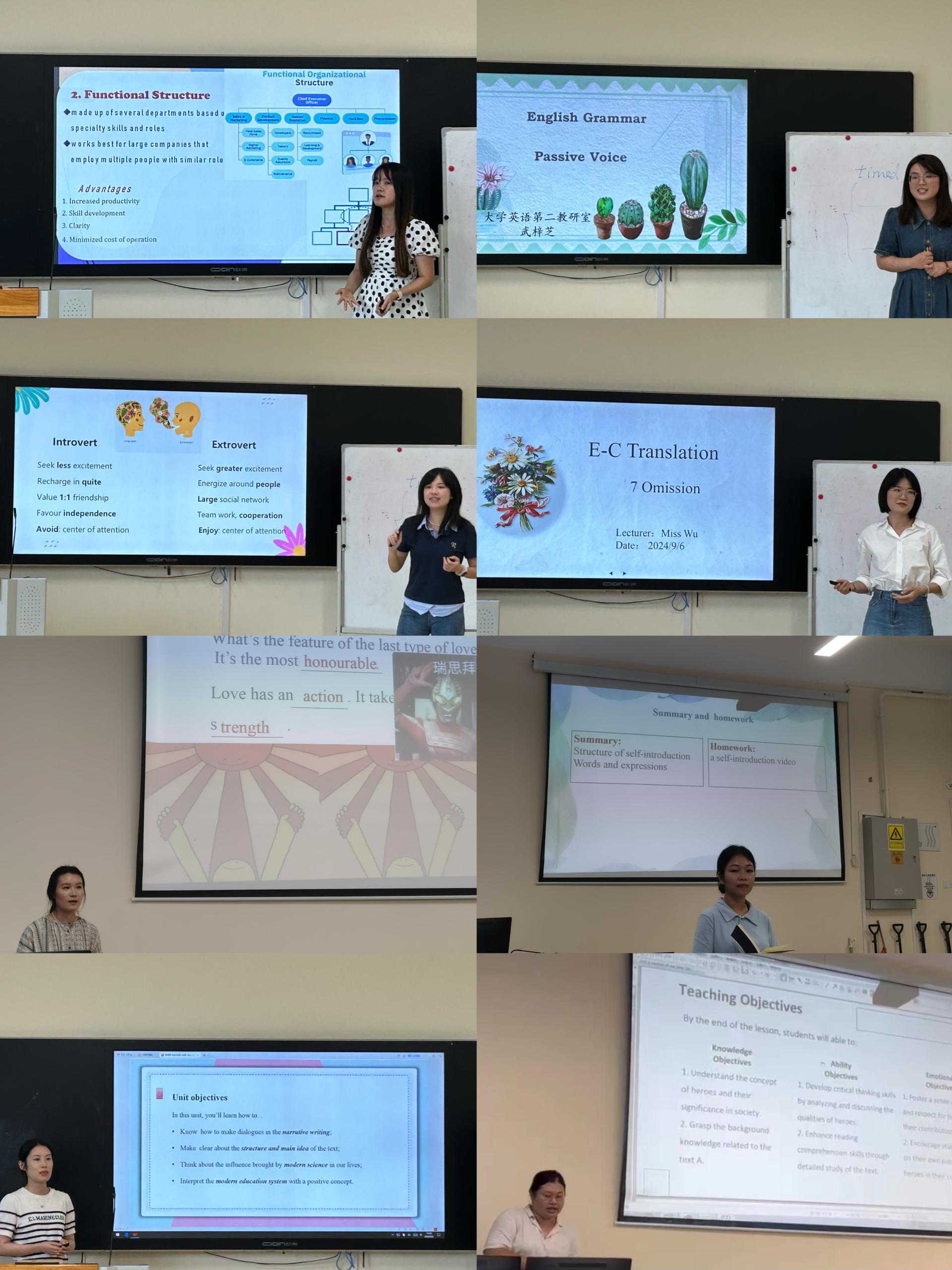 为了确保新学期新开课程的教学质量和教学效果,外贸与外语学院于9月5日、6日两天开展了2024-2025学年第一学期新开课教师试讲活动,各教研室主任及全体专任教师参加。