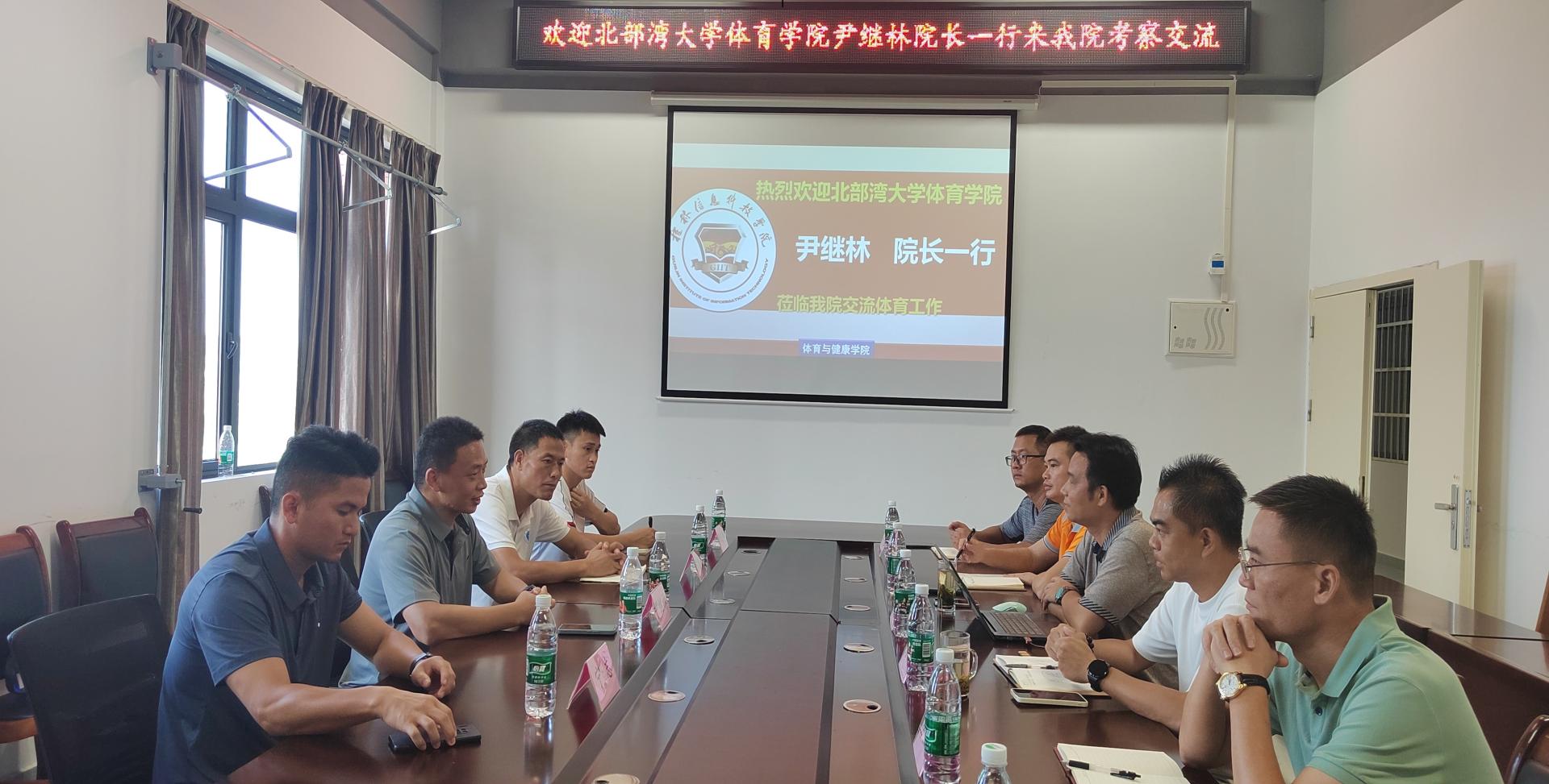 9月13日下午,北部湾大学体育学院尹继林院长一行到体育与健康学院进行交流研讨,会议由体育与健康学院院长周勇主持,体育与健康学院党总支书记、副院长关永康、各教研室主任在行健楼205会议室参加了此次会议。