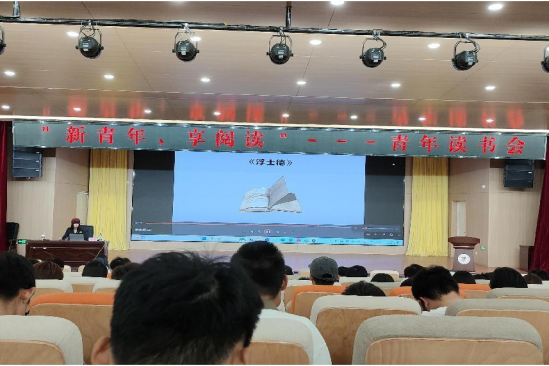 读书会上,刘副教授先后分享了《习近平的七年知青岁月》《浮士德》《人生》《简•爱》《你当像鸟飞往你的山》等国内外经典书籍。通过图文并茂、视频与讲解和共读的生动形式,带领在场师生一起感受书籍中的经典名句,讲述了伟人、名人和普通人从阅读和书籍中汲取奋斗力量的励志故事,鼓励大家要多读书,读好书,以“我生来就是高山而非溪流,我欲于群峰之巅俯视平庸的沟壑。我生来就是人杰,而非草芥,我站在伟人之肩藐视卑微的懦夫”的人生态度,脚踏实地,仰望星空,朝着伟大的目标不断前进。