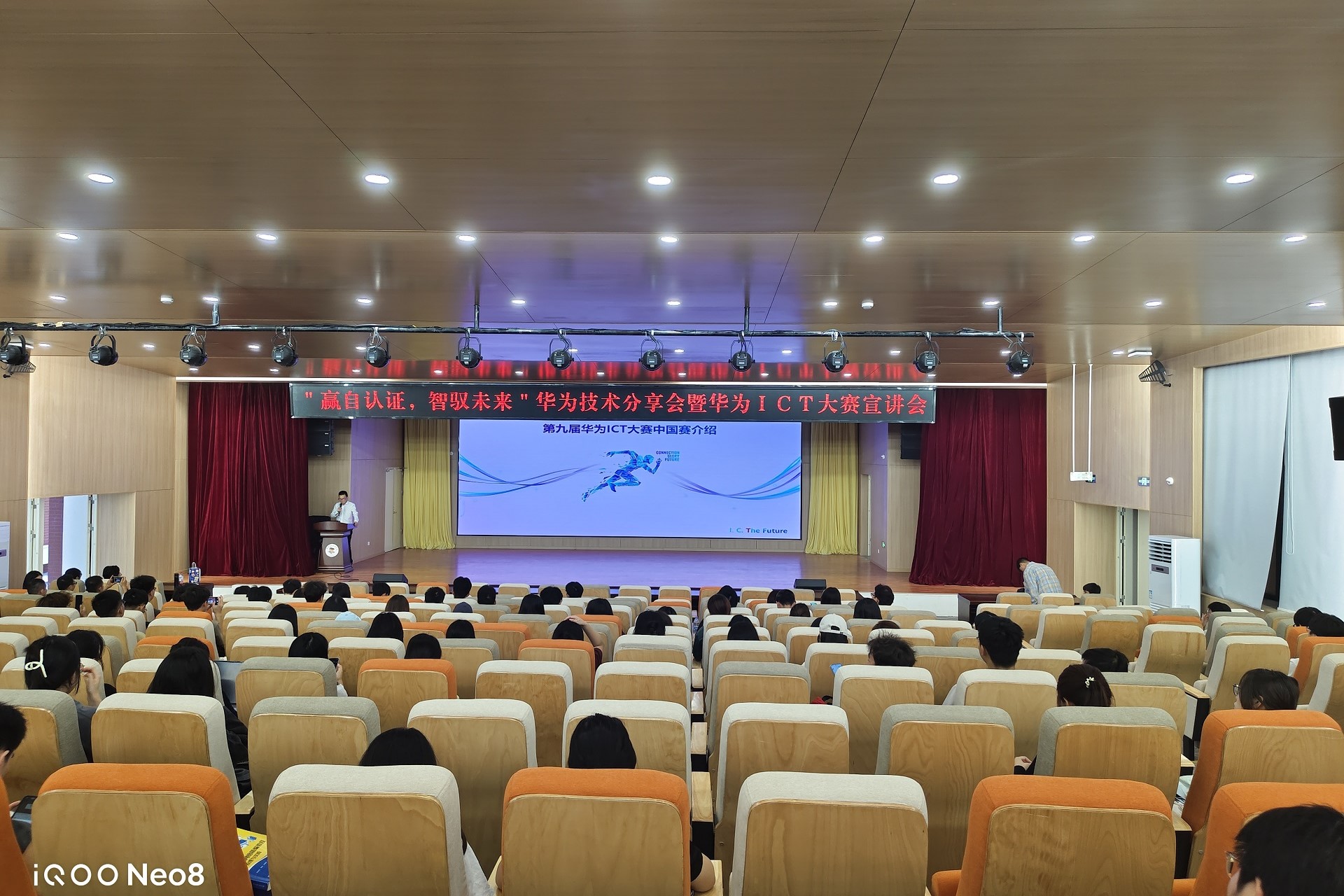 近日,信息工程学院举办“赢自认证、智驭未来”的华为技术分享会暨华为ICT大赛的路演活动。我院网络工程教研室主任王喜来、华为技术有限公司广西地区人才生态总监彭梓洋、深圳市讯方技术股份有限公司技术总监昌有情、校企合作经理韦雨沙以及培训客户经理谭梦情等嘉宾出席了此次活动。同时,来自包括网络工程、计算机科学与技术、软件工程、通信工程、数据科学与大数据技术、人工智能等多个专业的200余名师生也参与了本次盛会。