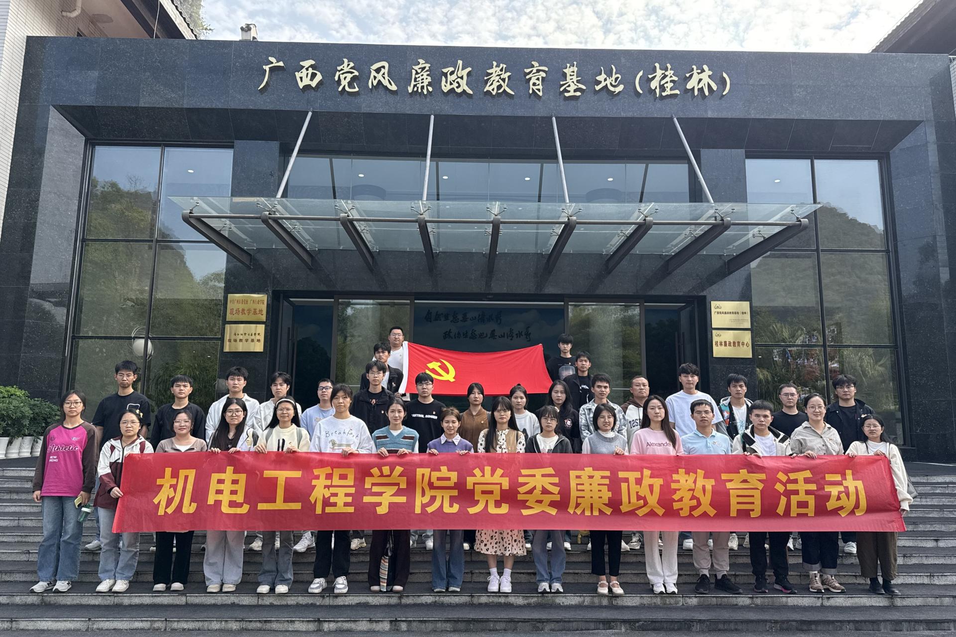 为深入学习贯彻落实党的二十届三中全会精神,增强师生党员的廉洁意识,持续推进清廉学校建设。11月6日下午,机电工程学院党委组织师生党员代表赴广西党风廉政教育基地(桂林)开展廉洁教育活动。