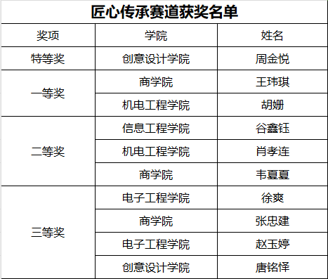 经过多轮激烈比拼与综合评定,各赛道分别评选出特等奖1名、一等奖2名、二等奖3名、三等奖3名。