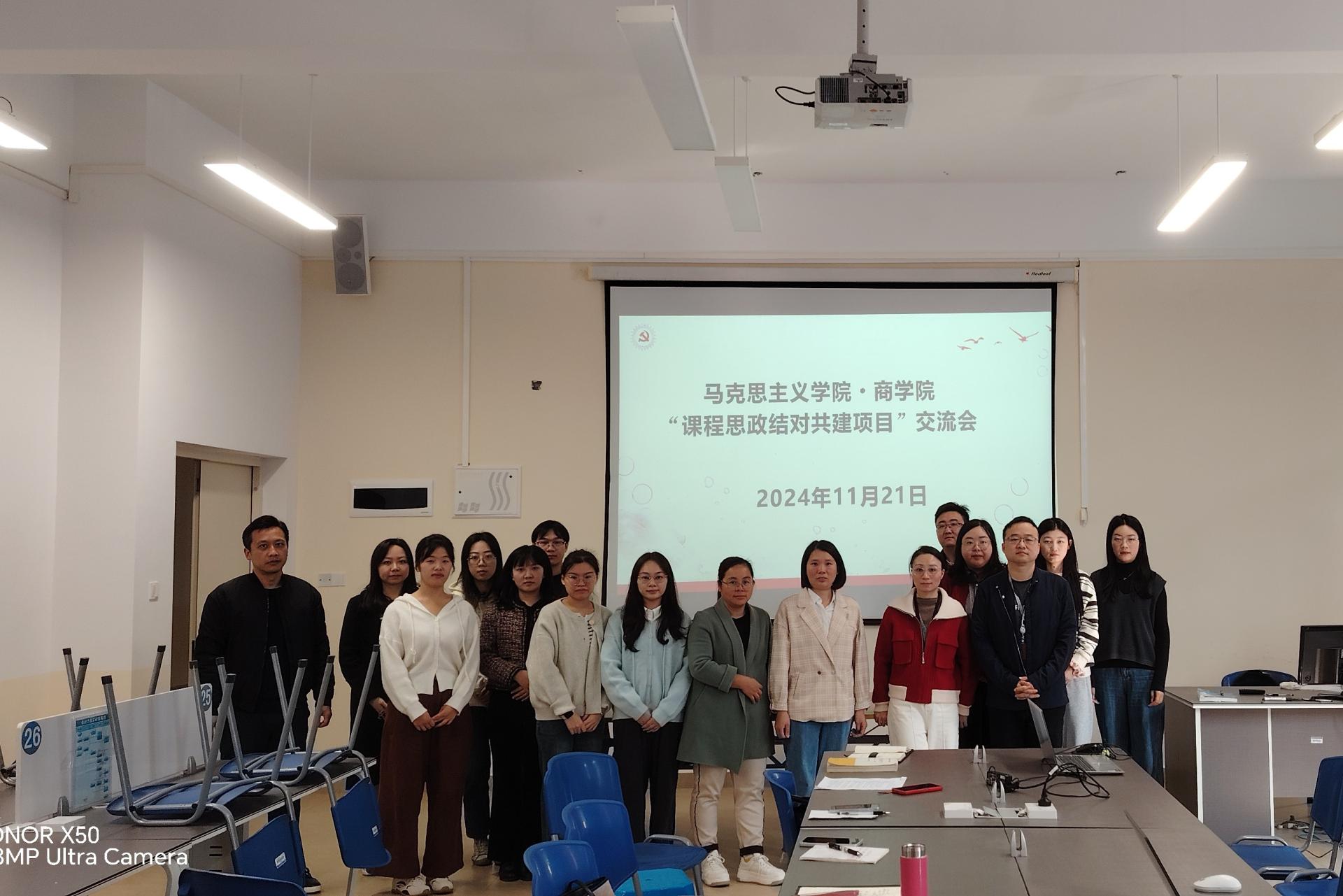 11月21日中午,商学院在F315召开“商学院和马克思主义学院课程思政结对共建交流会”。本次交流会由马院蒋丽娜老师和商学院刘凤英老师共同主持。交流会聚焦商科专业课程思政的发展方向与项目申报,旨在通过跨学科交流,推动商科教育与思政教育的深度融合。