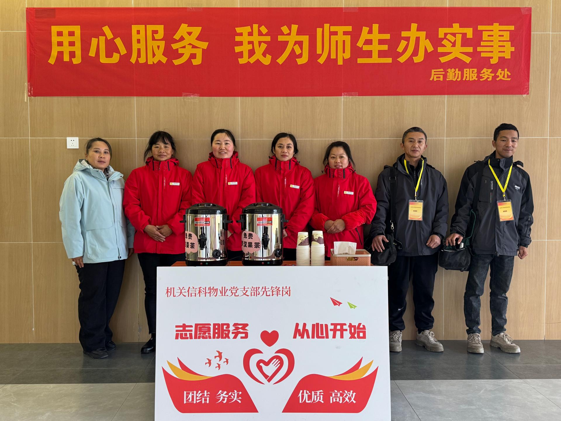 考试当天,后勤物业工作人员凌晨5:00便开始清理考场卫生,并对考场区域进行消毒。维修工作人员也早早到场值岗,随时准备应对突发状况。同时,后勤服务处在考场外设置了“支部先锋岗”,开展免费提供2B铅笔、水性笔、橡皮擦、姜糖水、罗汉果茶等暖心服务,为有需要的考生解决燃眉之急,送上冬日的温暖。
