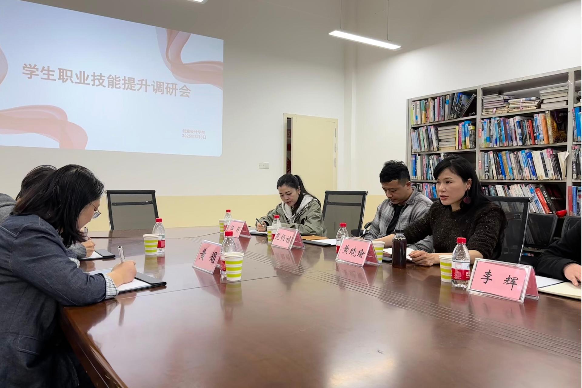 为进一步提升学生的职业技能水平,推动校企合作与产教融合,4月8日,创意设计学院在德远楼E504召开学生职业技能提升调研会。本次会议由创意设计学院黄晓瑜院长、继续教育学院黄娟院长共同主持,学院书记范恒祯、副院长李辉、院长助理伍菲以及学院教师代表出席会议。