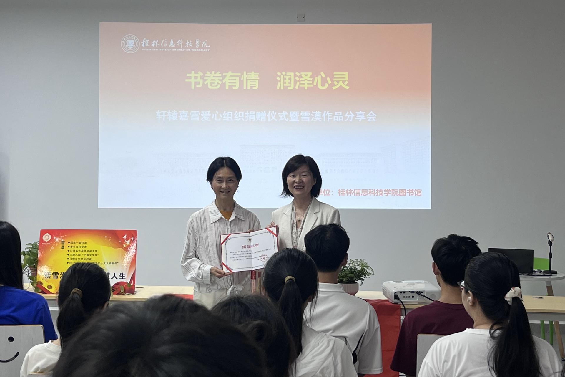 5月9日下午,桂林轩辕嘉雪社会工作服务中心向学校捐赠图书仪式在知行楼图书馆621室举行。桂林轩辕嘉雪社会工作服务中心顾问黄德萍、学校图书馆馆长申琍及师生代表30余人参加了活动。