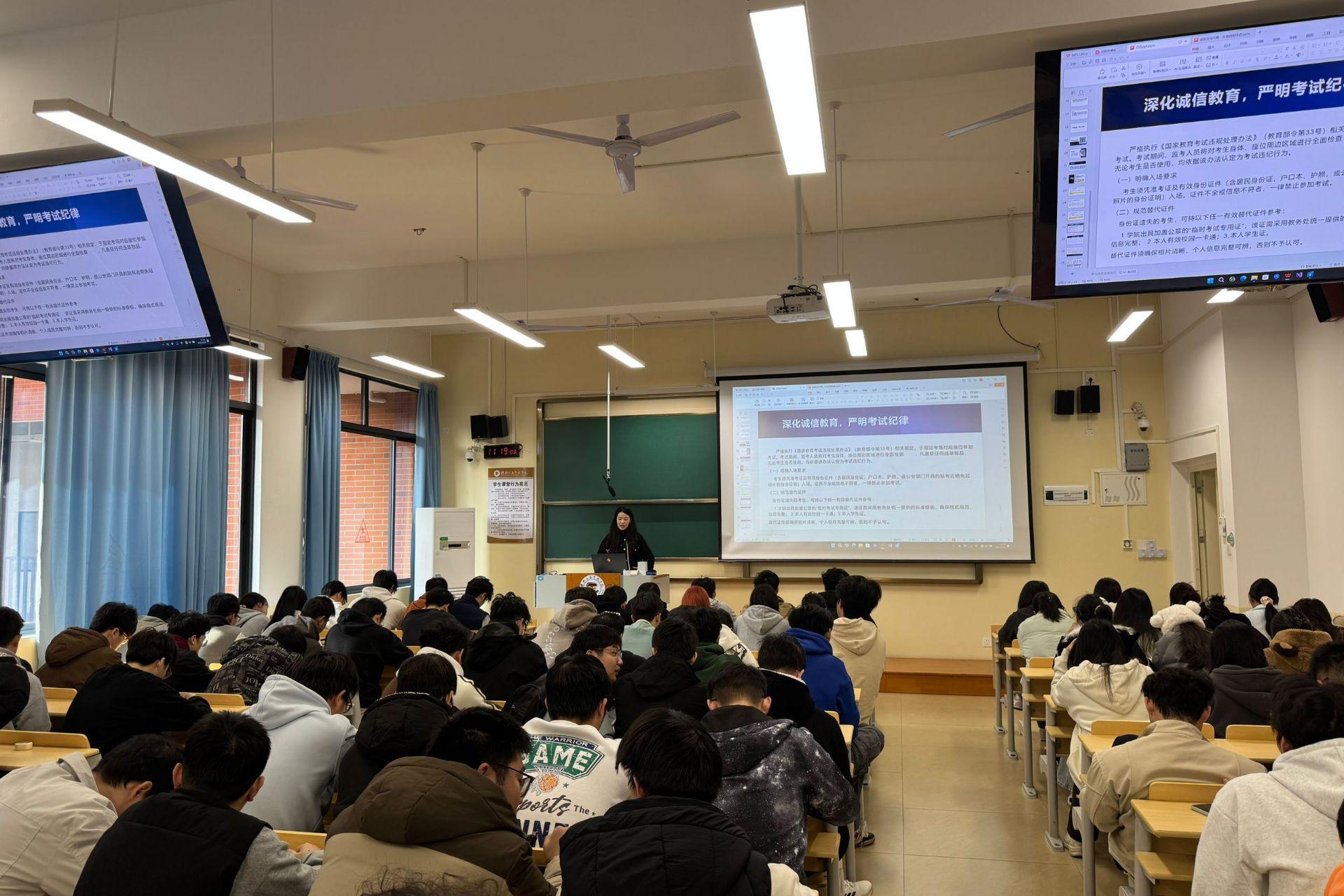 学院高度重视此次主题教育工作,在四六级考试前夕周密部署,确保教育覆盖到每一位学生。各班班会上,辅导员及班委带领同学们深入学习了《国家教育考试违规处理办法》及学校相关规章制度,结合典型案例详细解读考试纪律要求与违纪后果。会上,全体同学庄重签署了《诚信考试承诺书》,承诺自觉遵守考试纪律,以真实水平检验学习成果,坚决抵制任何形式的违纪舞弊行为。