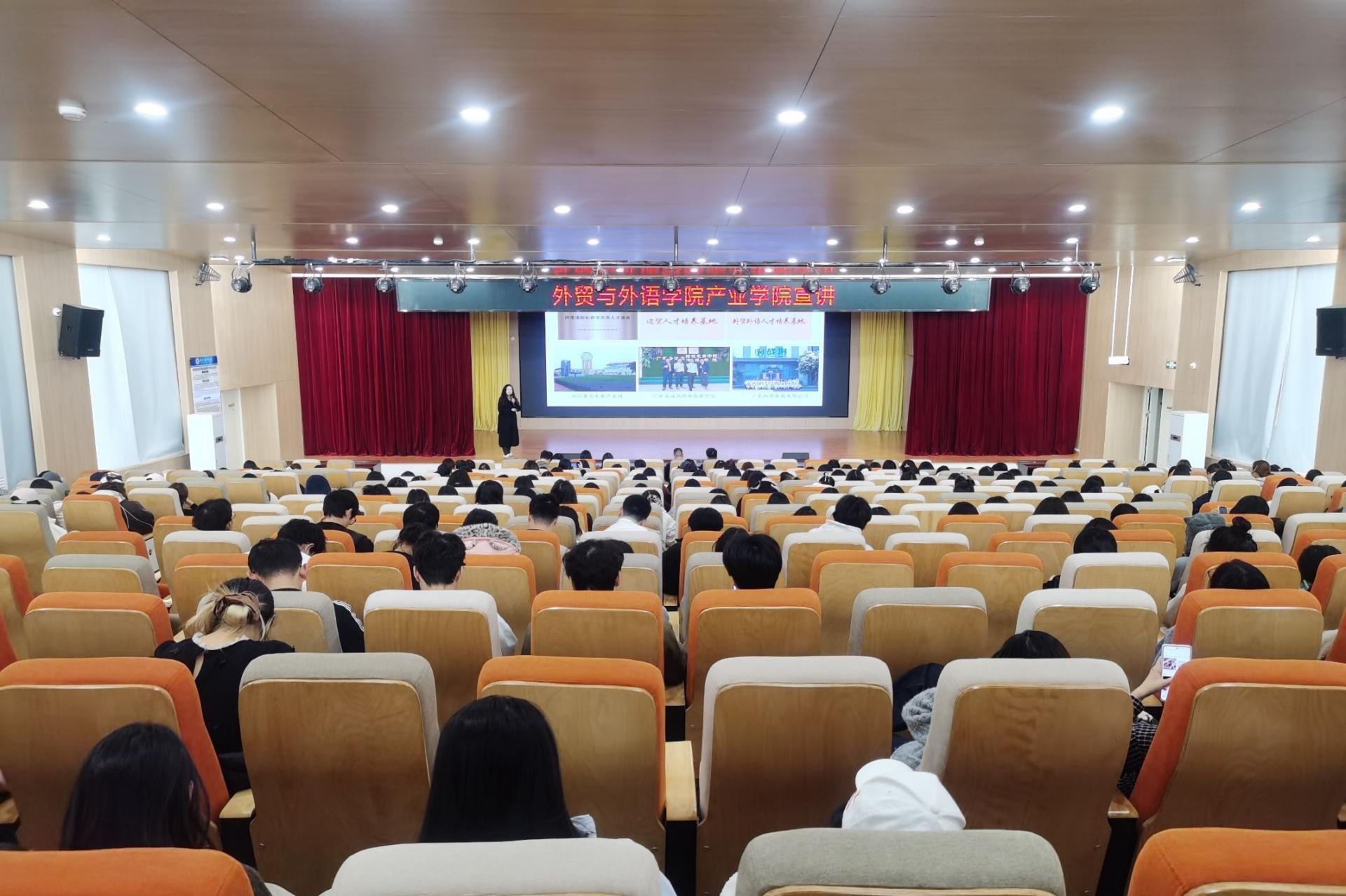 为深化产教融合、推动校企协同育人,帮助学生提前规划职业发展方向,2025年12月17日至18日,外贸与外语学院面向2023级全体学生,连续举办“跨境数字贸易产业学院”与“国际酒店产业学院”两场项目宣讲会。宣讲活动由学院副院长赖安主持,各教研室主任、副主任及相关专业教师共同参与。