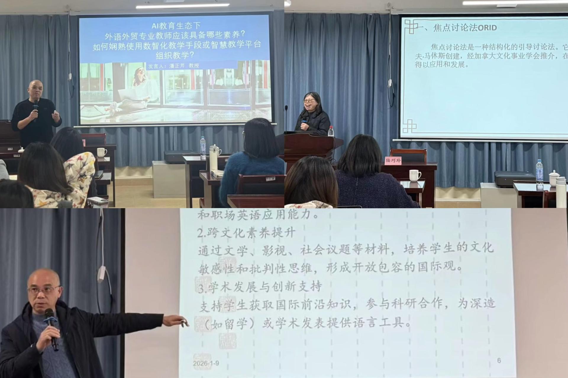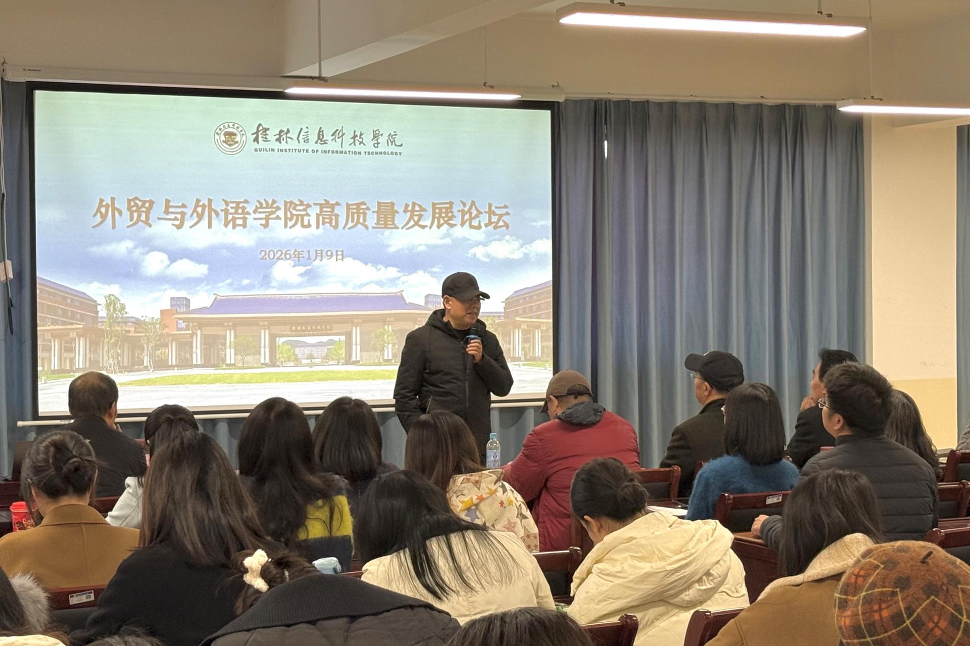 1月9日下午2:00,外贸与外语学院在文汇楼L702报告厅成功举办第二期高质量发展论坛。本次论坛以“外贸与外语学院高质量发展:问题、治理与进路”为主题,聚焦人工智能、新质人才培养与高质量就业等关键议题,旨在回应教师关切、凝聚发展共识,推动学院在应用型办学道路上实现新突破。