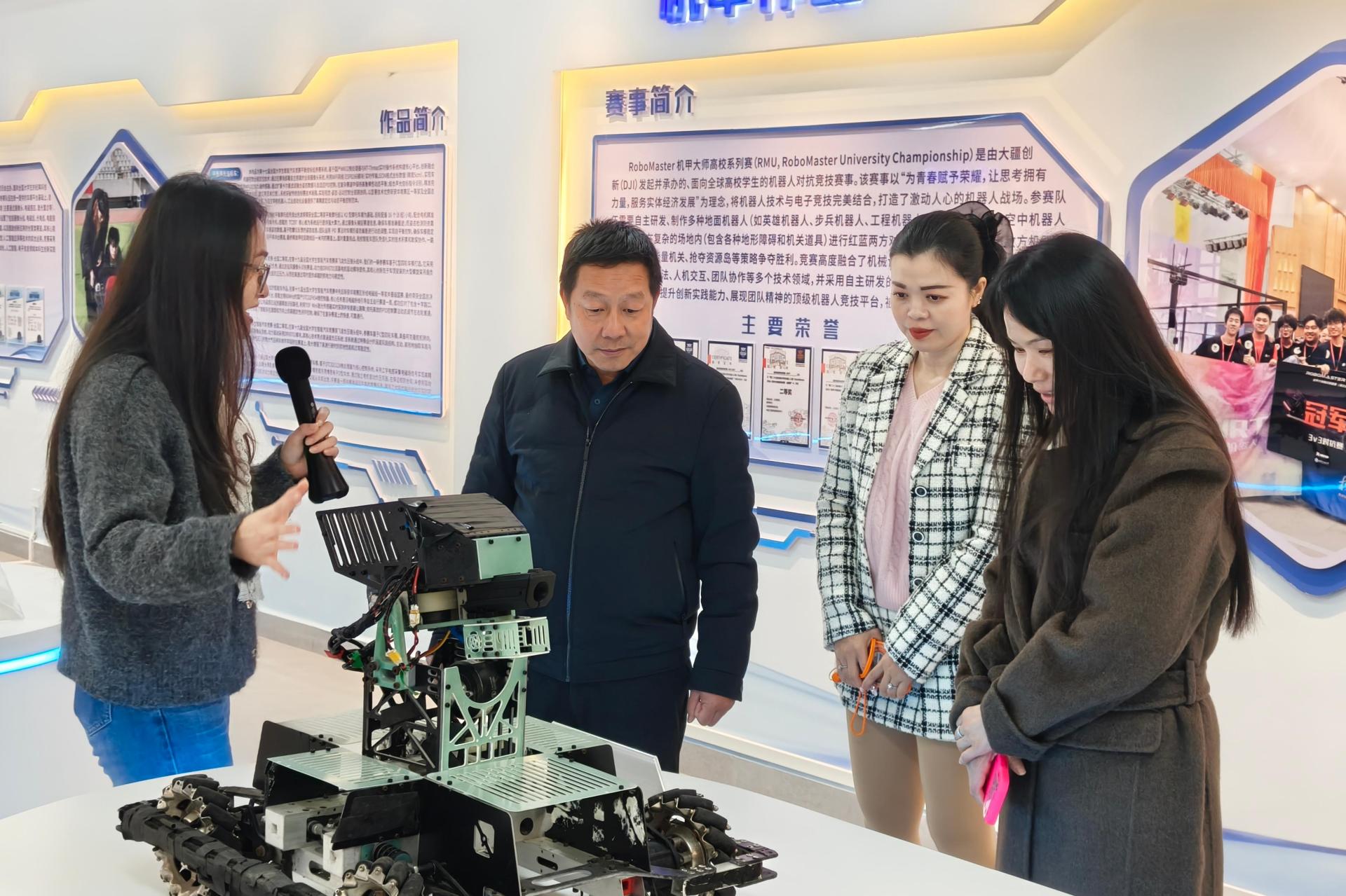 调研团先后走访创新实验中心、科技馆、学生公寓及创意设计学院,深入了解pp电子办学条件、专业建设与科创育人成果。秦校长对pp电子校园环境、教学设施及人工智能领域发展成效给予高度认可,认为两校在人才培养方向上高度契合,合作空间广阔。