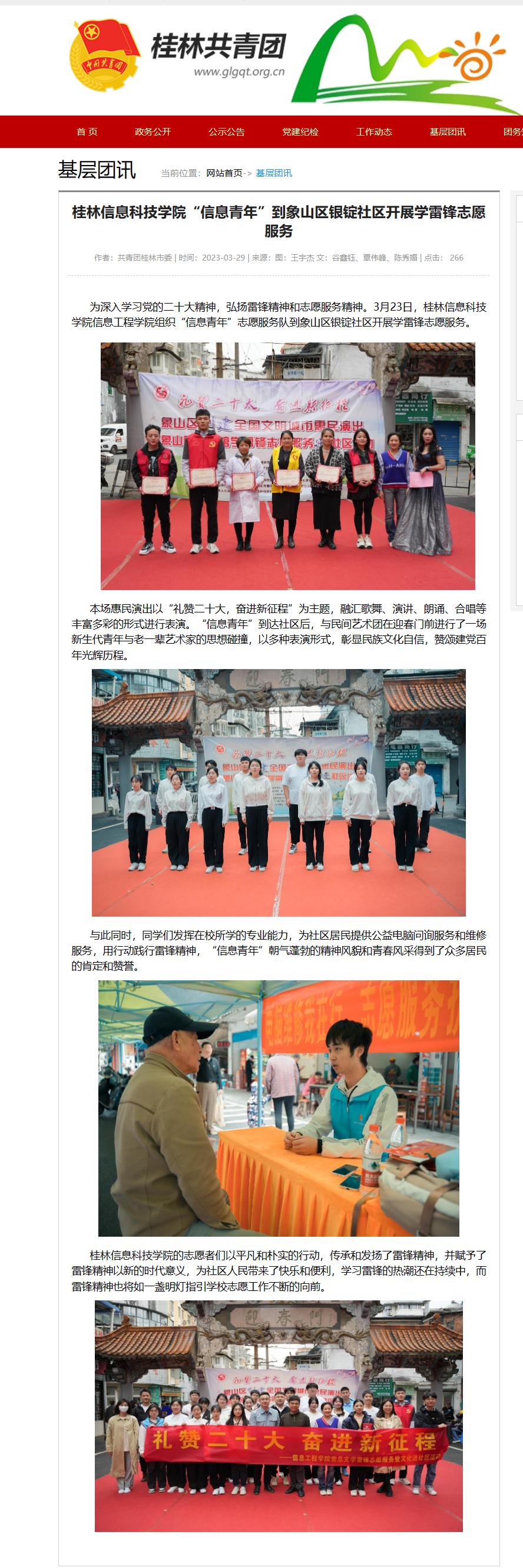 为深入学习党的二十大精神,弘扬雷锋精神和志愿服务精神。3月23日,pp电子模拟器网站信息工程学院组织“信息青年”志愿服务队到象山区银锭社区开展学雷锋志愿服务。