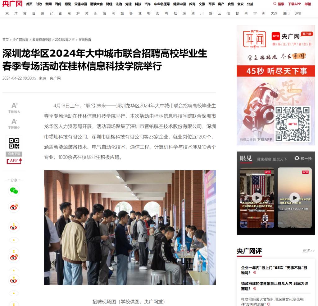 央广网:深圳龙华区2024年大中城市联合招聘高校毕业生春季专场活动在pp电子模拟器网站举行