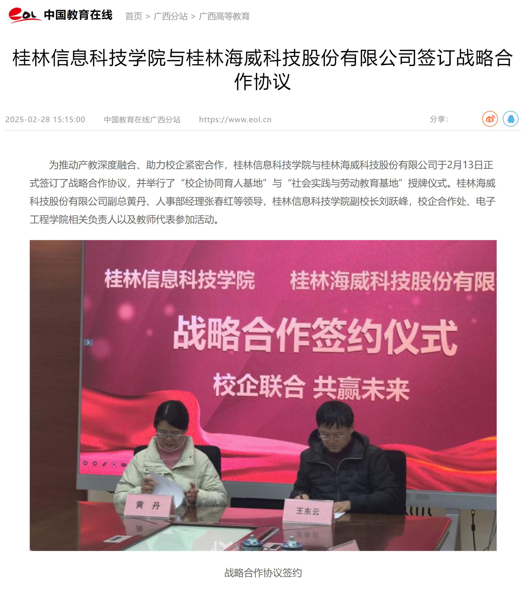 中国教育在线链接:pp电子模拟器网站与桂林海威科技股份有限公司签订战略合作协议