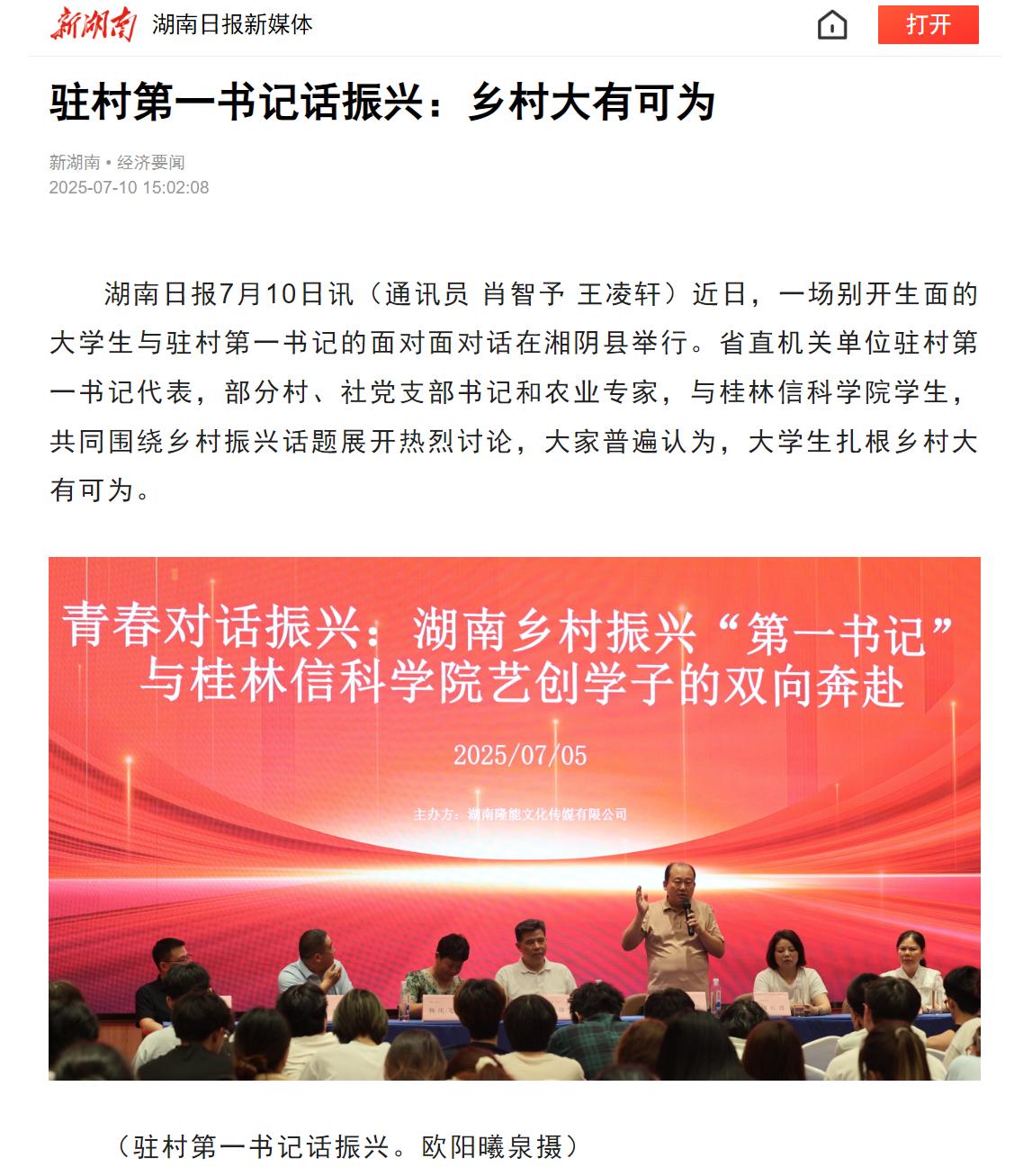 湖南日报7月10日讯(通讯员 肖智予 王凌轩)近日,一场别开生面的大学生与驻村第一书记的面对面对话在湘阴县举行。省直机关单位驻村第一书记代表,部分村、社党支部书记和农业专家,与pp电子模拟器网站学生,共同围绕乡村振兴话题展开热烈讨论,大家普遍认为,大学生扎根乡村大有可为。