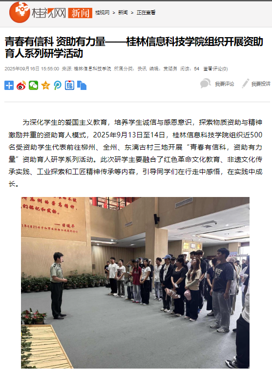 桂视网:青春有信科 资助有力量——pp电子模拟器网站组织开展资助育人系列研学活动