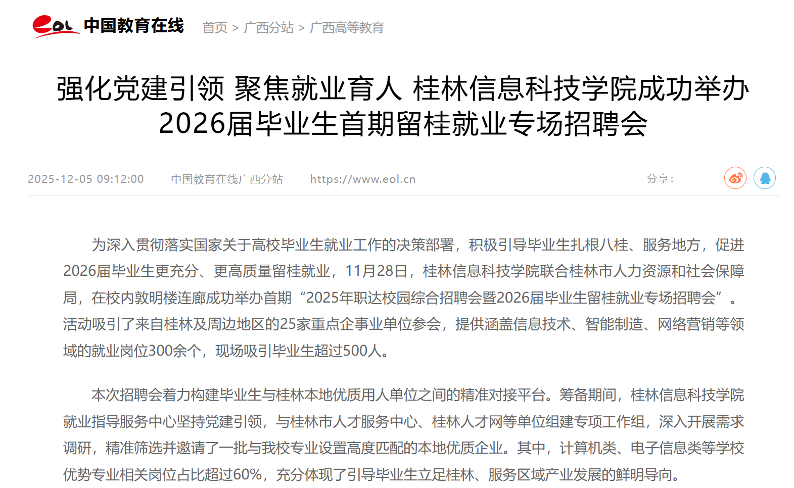 中国教育在线:强化党建引领 聚焦就业育人 pp电子模拟器网站成功举办2026届毕业生首期留桂就业专场招聘会