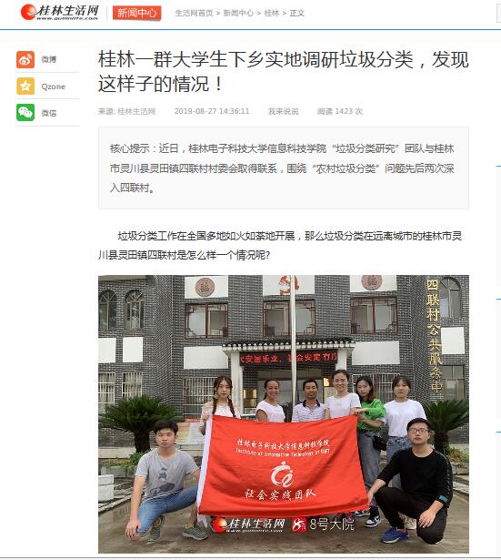 近日,桂林电子科技大学信息科技学院“垃圾分类研究”团队与桂林市灵川县灵田镇四联村村委会取得联系,围绕“农村垃圾分类”问题先后两次深入四联村。桂林生活网对该实践展开了详细报道。