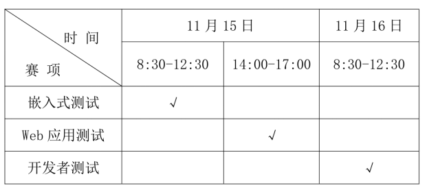 报名方式:大赛报名通道将于9 月 10 日 12:00 开启,届时请登录大赛官网(www.mooctest.org)报名,于 10 月 31 日 24:00 截止。个人赛由参赛者本人报名,鼓励选手报名参加多个赛项,大赛全程不收取任何费用。