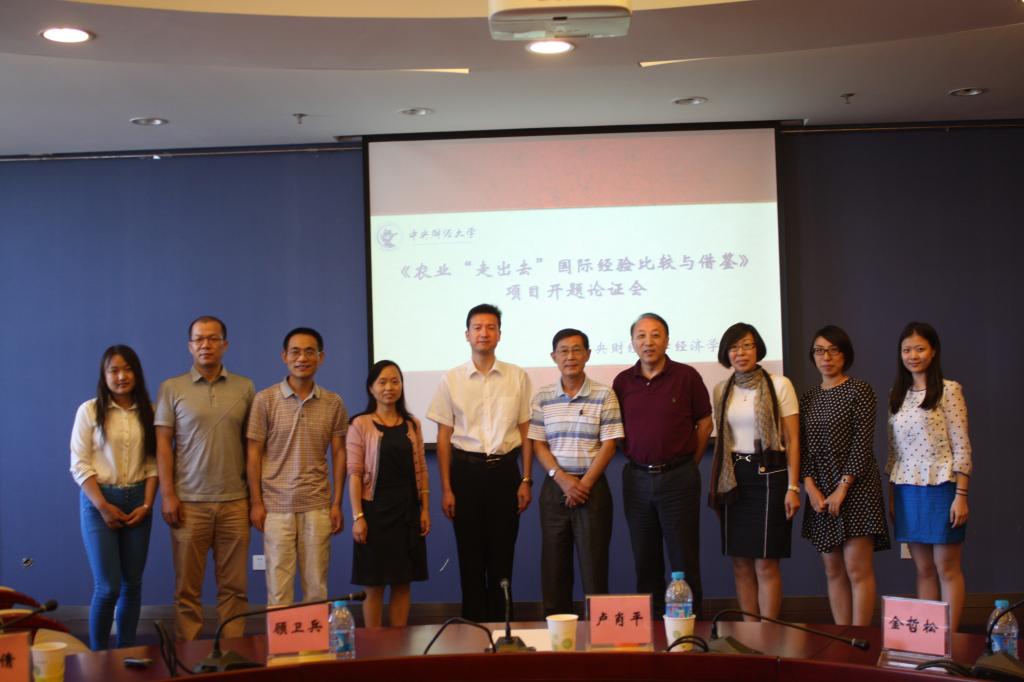 2015年6月18日由我校yl23455永利官网农村经济发展中心于爱芝教授主持的农业部委托项目《农业“走出去”国际经验比较与借鉴》开题论证会在学术会堂606举行。专家组由原农业部国际合作司副司长、国际马铃薯中心亚太中心卢肖平主任,农业部国际合作司条法处顾卫兵处长,农业部对外经济合作中心项目管理处张倩处长,yl23455永利官网金哲松教授组成。该项目子课题负责人yl23455永利官网孙洪升教授,文化传媒学院宫丽颖副教授,农业部食物营养与发展研究所李京虎副研究员、科研处南荣素老师和部分研究生也参加了此次开题论证会。