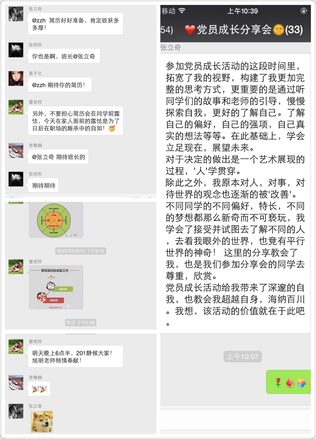 2015年3月25日,在第一季“党员成长分享会”已经实现学生互助成长、建立亲密师生关系的基础上,以助力学生党员成长和寻找党员“幸福感”作为两条主线的第二季“党员成长分享会”拉开帷幕。学院党总支副书记雷洪峰与党务干事韩旭明、谢文娟、梁延东四位老师共同组建“学业发展与生涯规划”教学团队,将生涯规划的课程体系纳入到党员教育活动中。