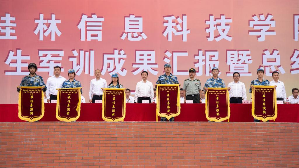 汇演结束后,学校党委副书记、纪委书记李飞宣读了军训获表彰连队、最佳表演奖和优秀教官,肯定了本次军训汇演和学习成果;主席台领导为获奖连队及获奖者颁奖并合影留念。
