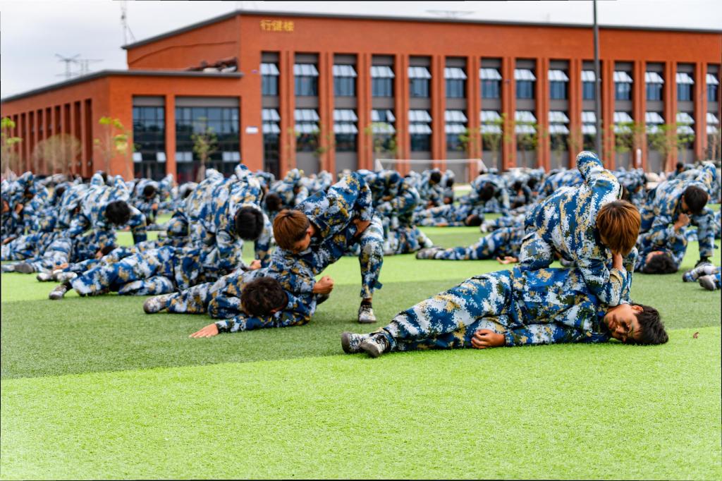 “摔擒术”方阵是摔技和擒技的有机结合,展现了pp电子学生的训练有素