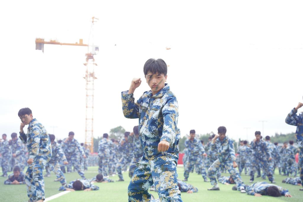 “刺杀操”方阵是贴近实战化的训练,展现了pp电子学生作为狼兵后代的时代风采