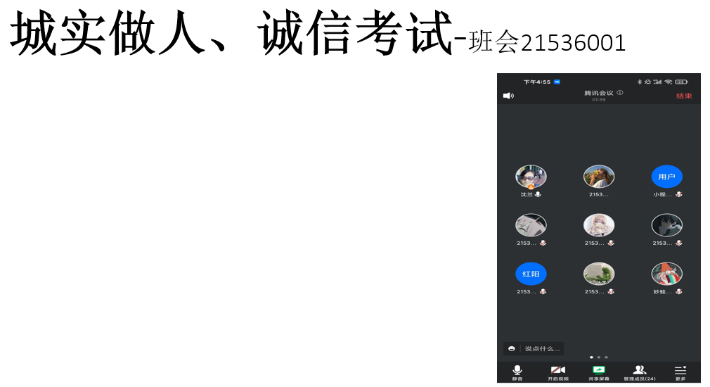 12月12日下午,2021级智能1班班主任沈兰兰老师与本班同学利用腾讯会议开展了线上主题班会-诚实做人诚信考试。