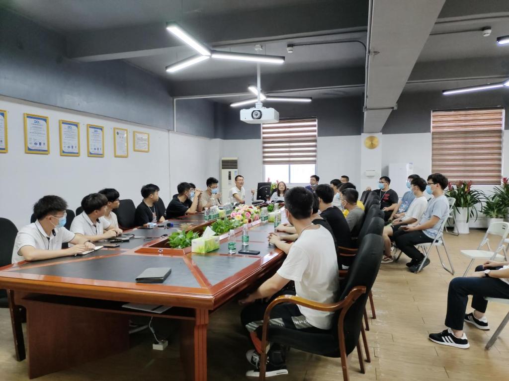 七月流金岁月,那不变的激情如火。2022年6月 29日上午pp电子模拟器网站机电工程学院刘跃峰院长、黄娟书记、辅导员胡平华、带队秦老师和16名校企联合培养的同学们在博辉特公司会议室开展了座谈会,座谈会上学院领导们亲切的问候了大家,让同学们积极发言,替大家解决生活上与工作上问题,并请18级学长为同学们分享在博辉特公司的各个方面经验,勉励同学们要打开视野格局,不忘初心,砥砺前行,不要局限于一些琐事,告诫同学们在校企联合培养期间,应当多积极参与工作实践,培养爱岗敬业、吃苦耐劳的精神,增强对岗位、职业的感情,较早地接受企业文化的熏陶,希望同学们有效提高自己的职业能力,积攒经验。