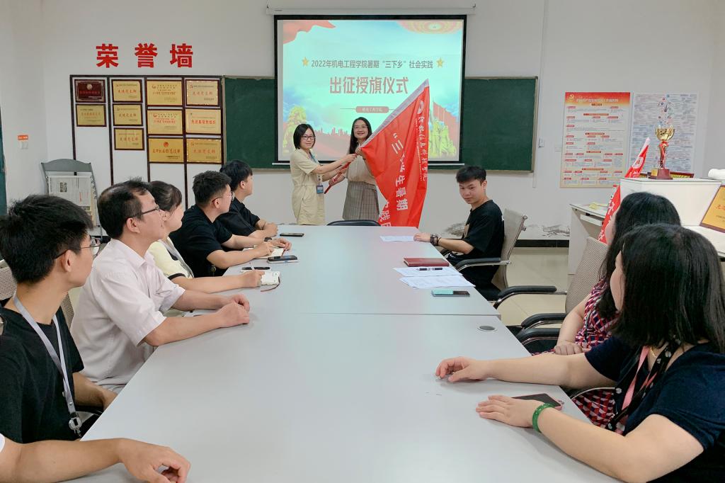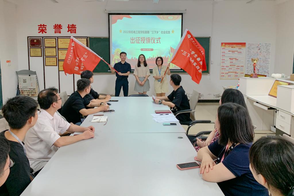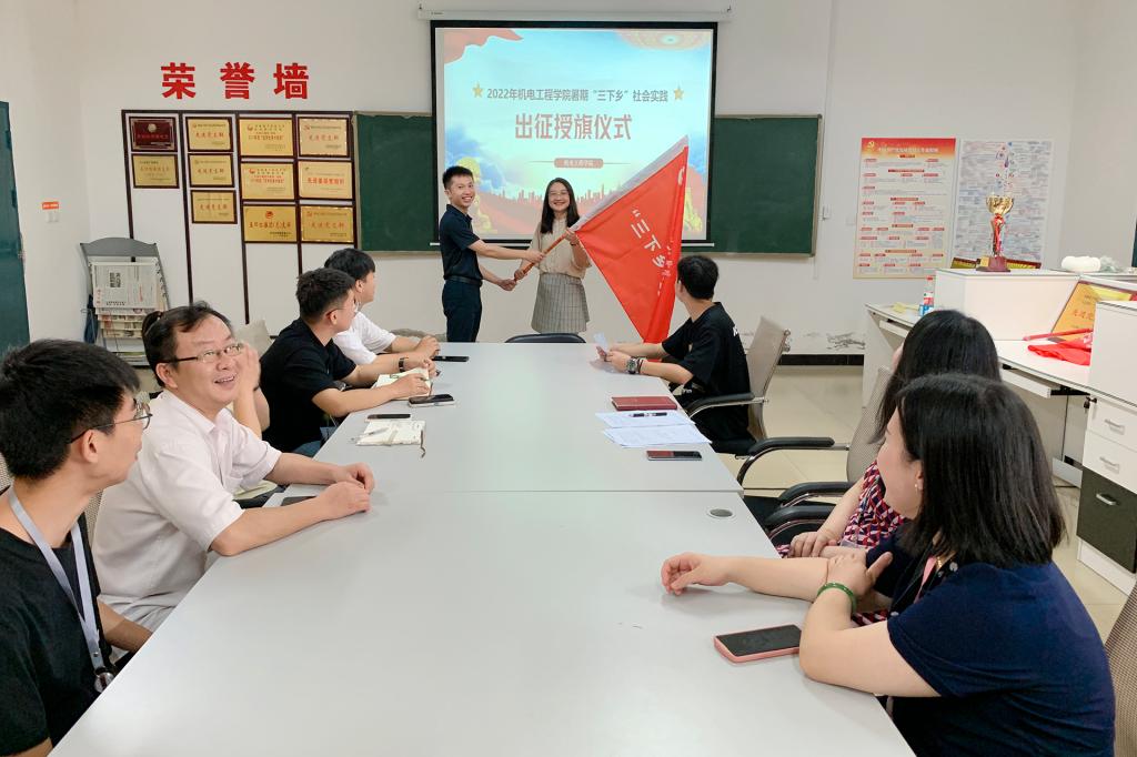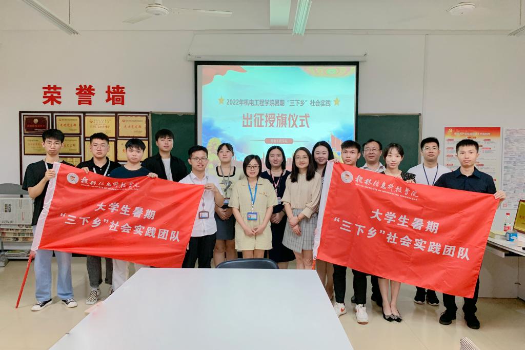 此次出征授旗仪式的顺利举行,拉开了我院2022年暑期“三下乡”社会实践活动的序幕。我院将结合实际,利用暑期组织广大师生走出校园,投身社会实践,用实际行动彰显机电青年的责任与担当。