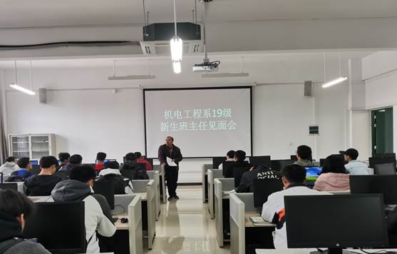 11月20日中午,机电工程系2019级机设5班在52402教室召开了新生班主任见面会。 机电工程系2019级机设5班的班主任由秦国华老师担任。老师自我介绍之后,对5班的同学们也进行了逐一的点名及认识,并且强调了新生应该注意的一些问题,教导同学们大学生不应该认为高考结束之后到了大学就可以放松了,大学不能放松而要更加努力的学习,大学很多事情要靠自学更要靠自觉。 见面会于13点整结束,虽然只有短短的二十几分钟,但是班主任老师简单的话语之中却充满了对大一新生的告诫,我们新生也应该努力践行班主任老师对我们告诫,不是对谁负责而是对我们自己负责。