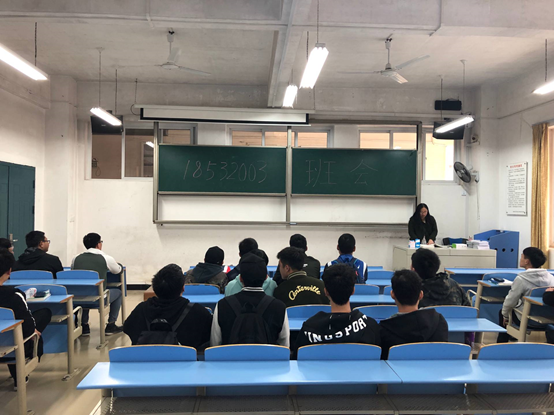 2019年3月15日中午12点45分18级机电专业三班班主任与本班同学在22106举行了见面会。