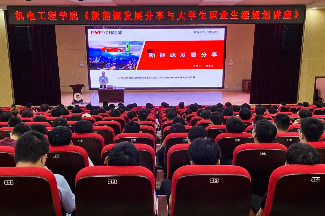 5月20日下午,机电工程学院诚邀惠州亿纬锂能股份有限公司人力资源中心梁东来经理在51206报告厅为2021级学生进行一场《新能源发展分享与大学生职业生涯规划》分享讲座。