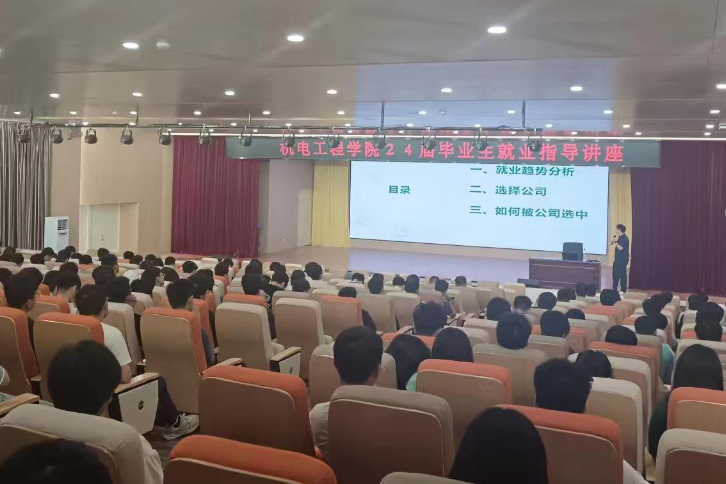 10月27日上午,机电工程学院邀请燕京啤酒(桂林漓泉)股份有限公司人力资源部经理(机电工程学院2014届毕业生胡杰校友)在F107报告厅开展学院2020级毕业生就业讲座。
