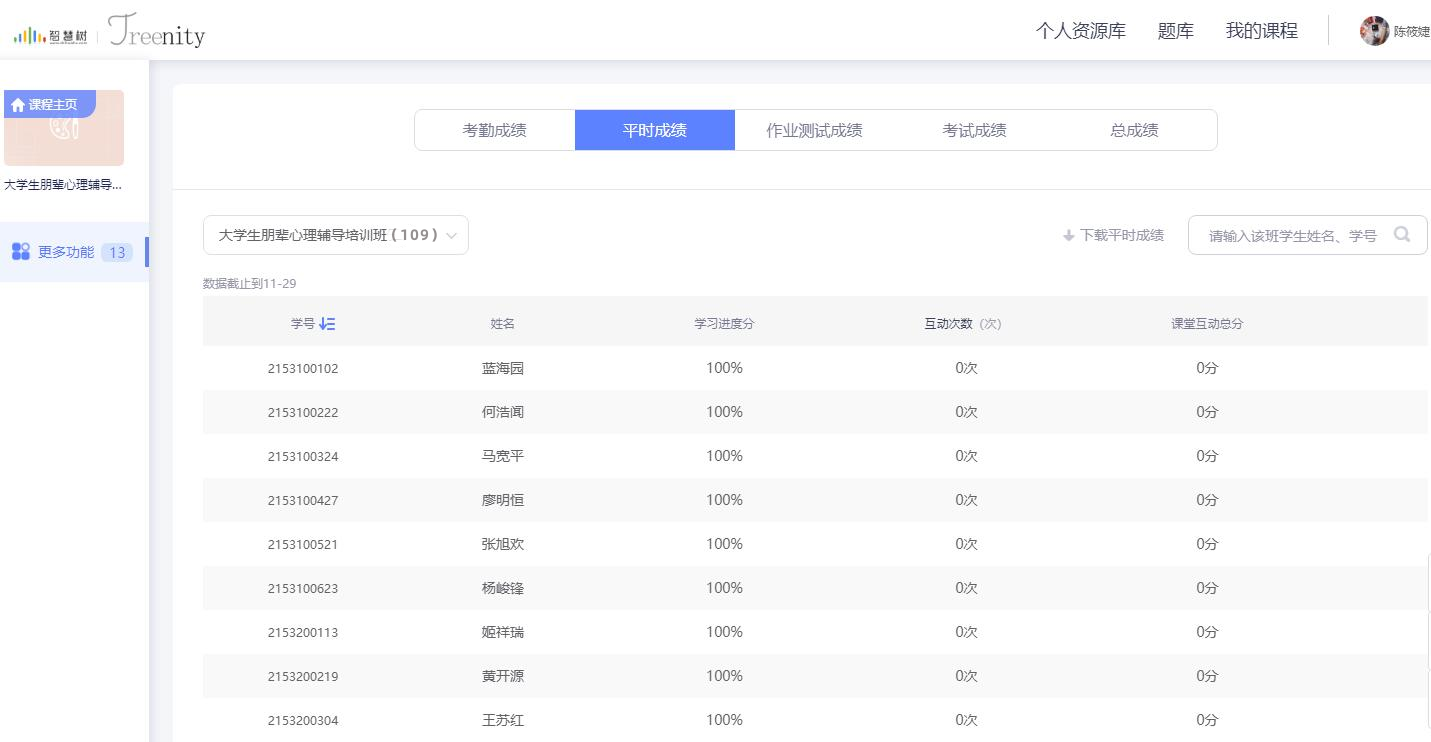 本次培训一共109名心理委员参加,完成《朋辈心理辅导的发展史》、优秀朋辈辅导者的素质和能力》、《优势视角下的朋辈助人理念》等6节课程。