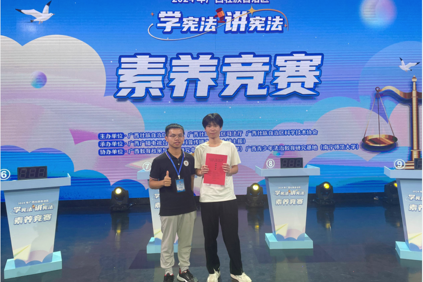 近日,2024年广西壮族自治区“学宪法 讲宪法”素养竞赛暨第九届全国学生“学宪法讲宪法”广西区赛决赛在广西广播电视台举行。来自pp电子机电工程学院2022级机械电子工程专业的尤朔同学,作为唯一选手代表学校与来自全区高校的66名选手同场竞技。