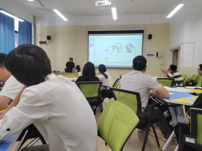 首先,莫老师强调了理论与实践相结合的重要性,他指出,虽然教育学的理论是基础,但是没有实际的教学案例作为支撑,那些理论就难以落地生根。并在讲座中引入了优秀的成功教学案例“电机开闭环控制系统原理与设计”,该项目为数字化大赛区赛入围项目。本项目深入探讨了电机开闭环控制系统的原理及其设计方法。首先介绍了直流电机的控制电路,包括其基本结构和工作原理,而后详细讲解了刀开关控制直流电机旋转的过程,以及如何设置电机参数以确保其正常运行。在讲述期间,莫老师详细地分析了每个项目案例的背景、目标、实施过程以及最终的教学成果。他不仅讲解了每个案例的成功之处,也坦诚地分享了其中遇到的挑战和困难,以及他是如何解决这些问题的。这种真实、生动的案例分析,让新教师们能够更加直观地理解教学过程中可能遇到的问题,并学习到解决问题的策略和方法。
