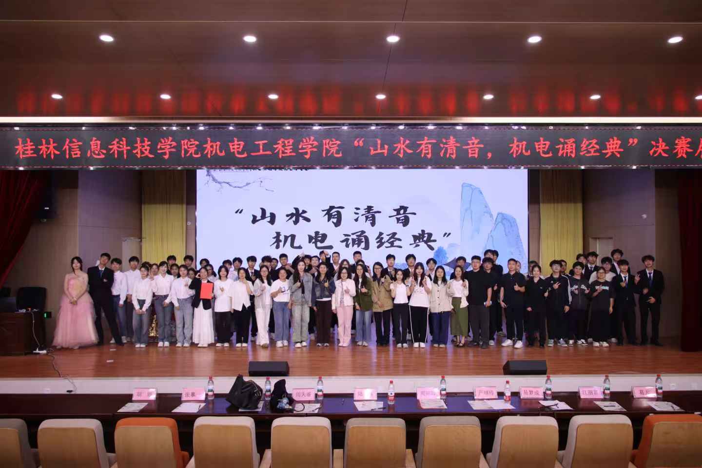 为建立党建引领的强大磁场,释放基层党组织的“红色”吸引力、凝聚最强向心力,以“磁力党建”为核心品牌,4月23日晚,机电工程学院“山水有清音,机电诵经典”主题诵读活动在学术报告厅F107隆重举行。学校团委书记周阳霖、机电工程学院党委副书记严继玲、全体辅导员及学生代表近400人齐聚一堂,共赴文化盛宴。