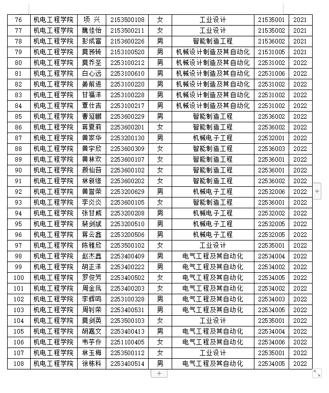 2022-2023学年机电工程学院国家励志奖学金名单公示