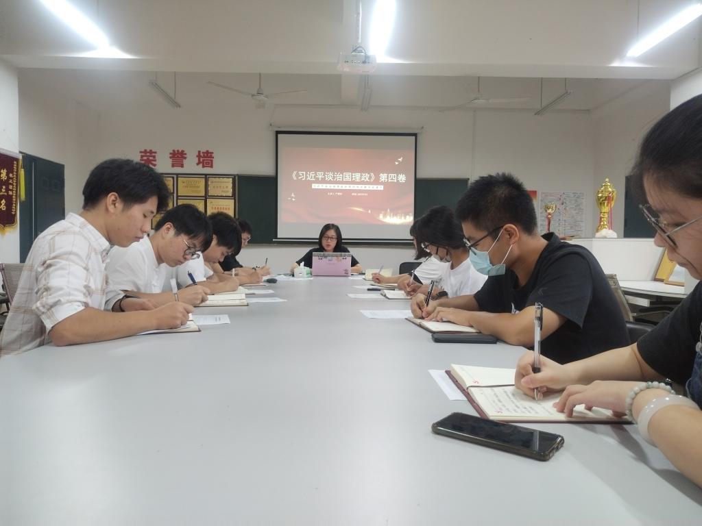 会上,支部书记围绕著作出版的重大意义、主要内容、如何学好用好《习近平谈治国理政》第四卷三方面解读,支部书记对全体党员提出要求,全体成员要悟透著作的精髓要义,推动学思践行走心走深走实。持之以恒用习近平新时代中国特色社会主义思想武装头脑、指导实践、推动工作。与会学生党员同志纷纷表示,会深入学习《习近平谈治国理政》第四卷,提高政治理论素养,在深学笃行中实现思想,在奋发有为中成就信念。