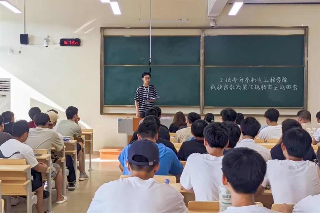 为加强马克思主义宗教观教育,坚决守好意识形态主阵地,9月7日—11日,机电工程学院分别在明志楼C309、C506、C509教室召开民族宗教政策法规宣讲会,会议由各年级辅导员主持,学院各年级学生分批次参加会议。
