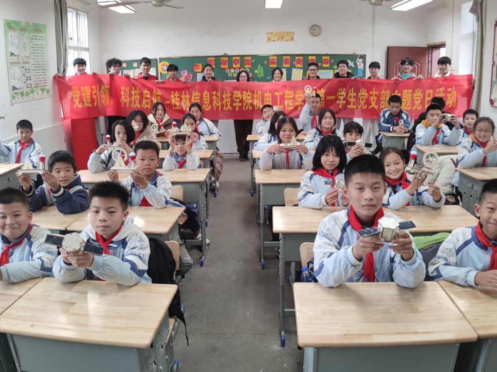 为深入学习贯彻习近平新时代中国特色社会主义思想,充分发挥学校服务桂林基础教育科技示范作用。12月12日,机电工程学院第一学生党支部赴桂林市龙门中心校开展“党建引领,科技启航”党日活动。活动由支部书记严继玲主持。