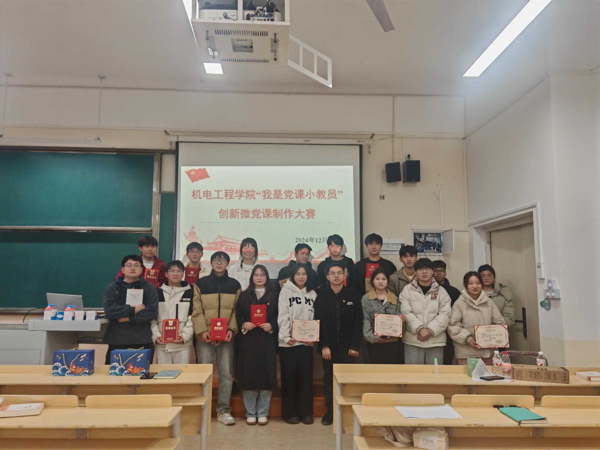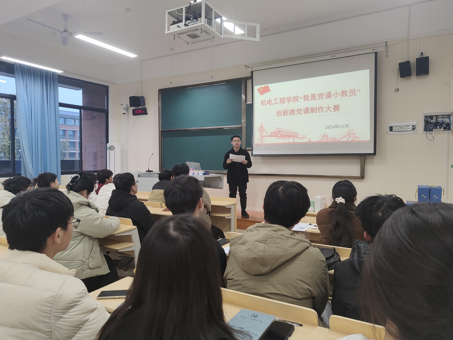 为深入学习宣传贯彻党的二十届三中全会精神,引导广大党员深刻理解把握以中国式现代化全面推进中华民族伟大复兴的核心要义,进一步提升党员教育实效,近日,机电工程学院党委立足“磁力党建”品牌建设,以“大磁铁”固本铸魂、“小磁铁”强基育人、“吸引物”凝聚共识为抓手,在D213开展“我是党课小教员”微党课制作比赛,以赛促学激活党员理论学习“内生力”。