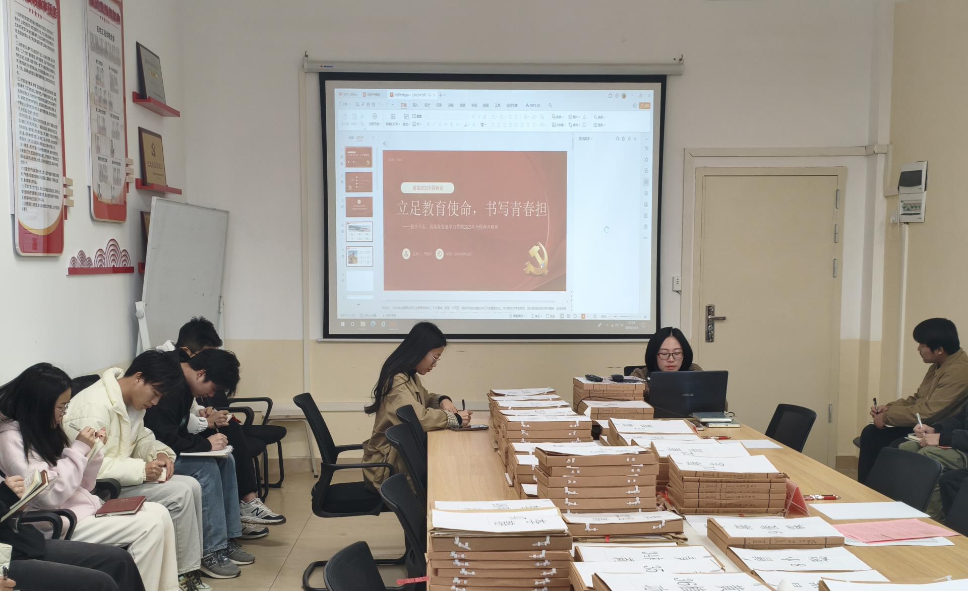 学习会上,严老师以“从两会关键词看青年担当”为题,系统解读2025年政府工作报告的核心内容,重点围绕“新质生产力”“教育强国建设”“青年就业保障”“绿色低碳发展”等与高校学生密切相关的议题展开分析。结合高校实际,支部党员李玉露老师强调:“学生党员要主动将个人成长与国家战略需求同频共振,在科技创新、乡村振兴、社会服务中发挥先锋模范作用,以真才实学服务人民、报效祖国。”