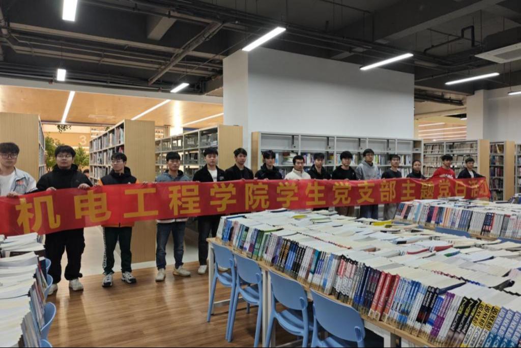 为弘扬志愿服务精神,助力校园文化建设,3月22日下午,机电工程学院第一学生党支部联合图书馆开展"书香致远,党员先锋行"图书倒架志愿服务活动,15名学生党员参与。